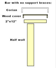 last house was that wood braces ("corbels") which supported the Corian made it difficult to get the barstools under the bar, much less sit under it.