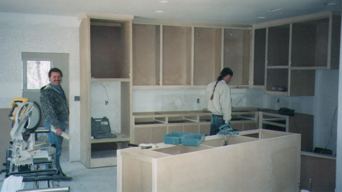 Breshears has a large shop where he makes the cabinets, then he brings them out and installs them. |