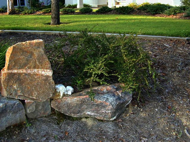 July 1, 2014: The Cotoneaster has done great in its new location. In fact, they got so big that we had to cut them back.