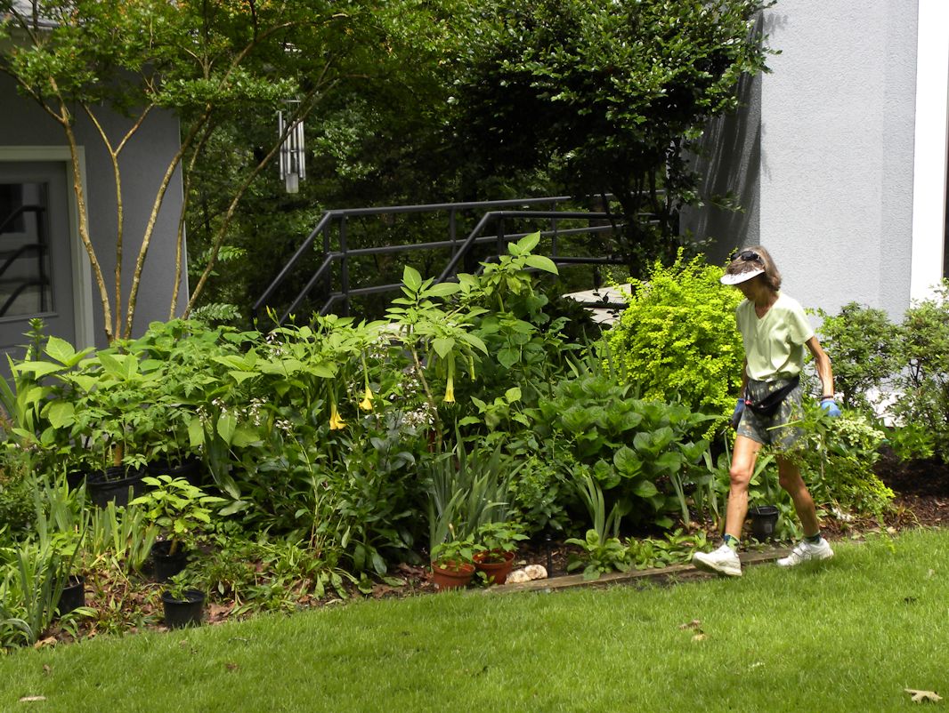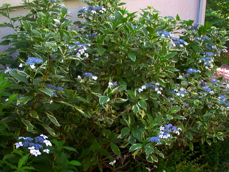 In southeast bed, next to Kay, to the right of the Angel Trumpet. This hydrangea was given to Kay in a pot by a neighbor.