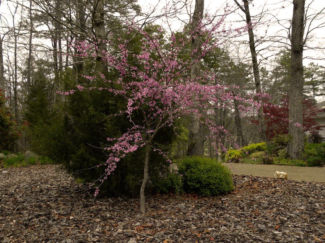 Newer Redbud with a Bradford Pear behind it. April 28, 2009: