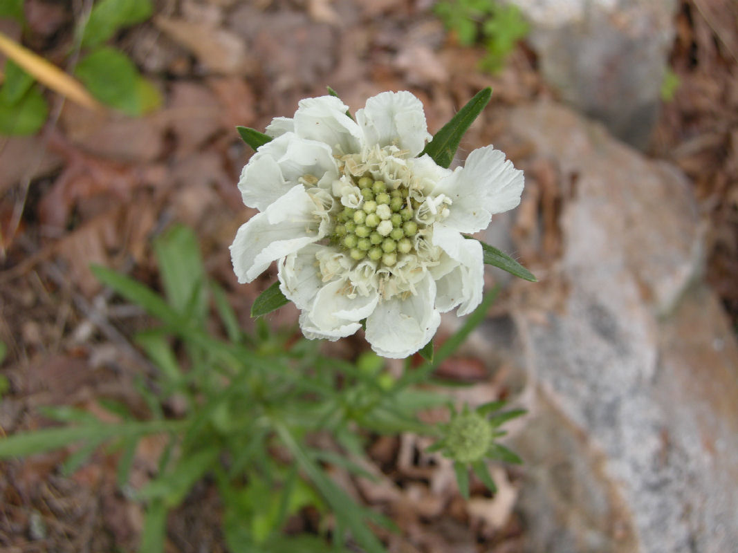 Scabiosa caucausica, at the top of the driveway circle: