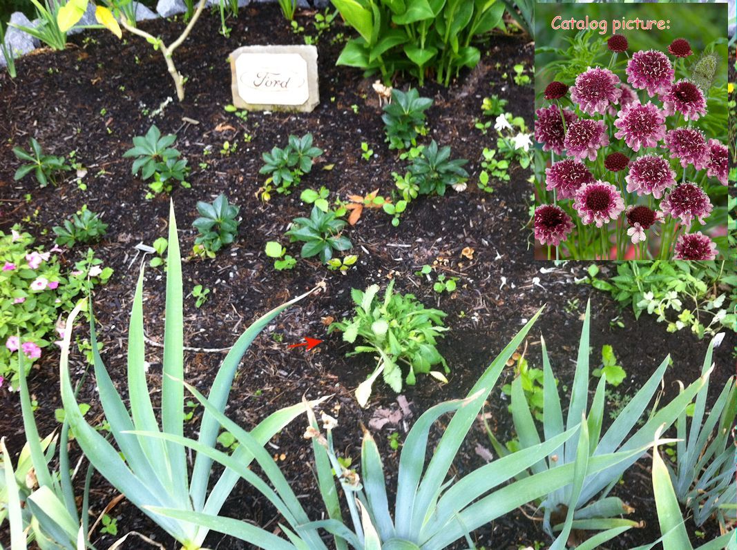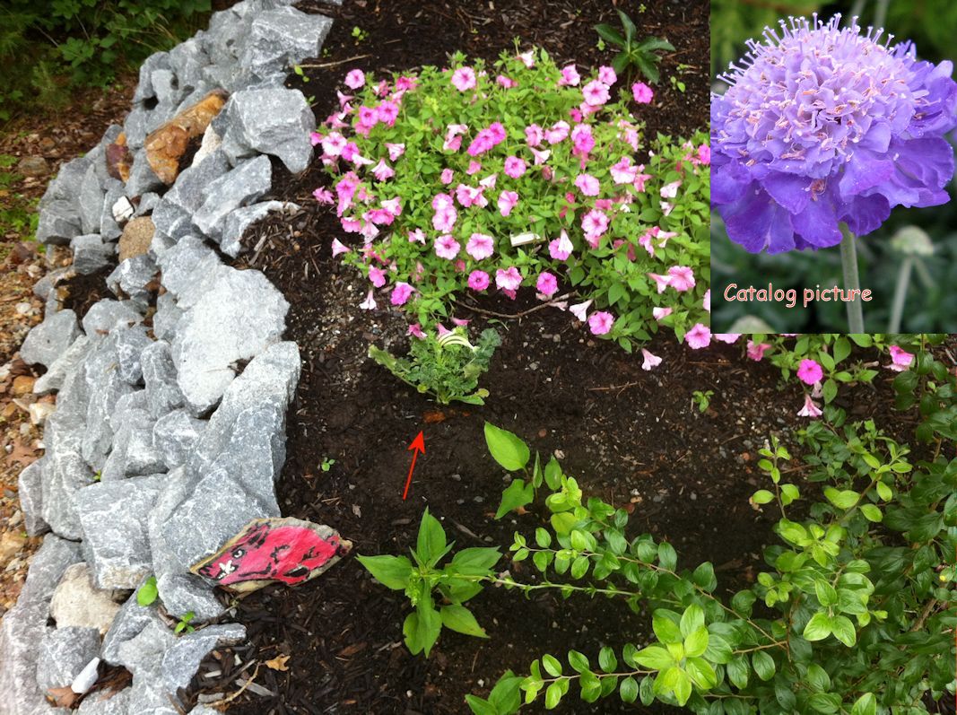 Scabiosa at front of southwest bed: