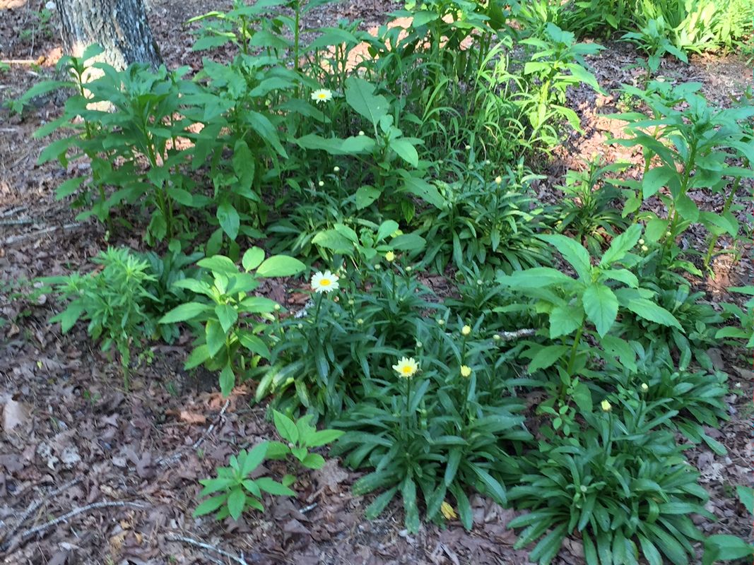 These daisies survived a hot summer drought in the center bed.