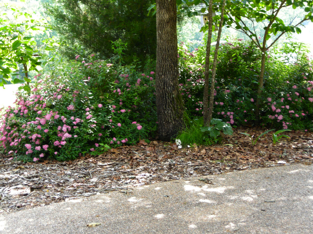 We have also planted some of this pink Spirea in the side lot, but they are still small.