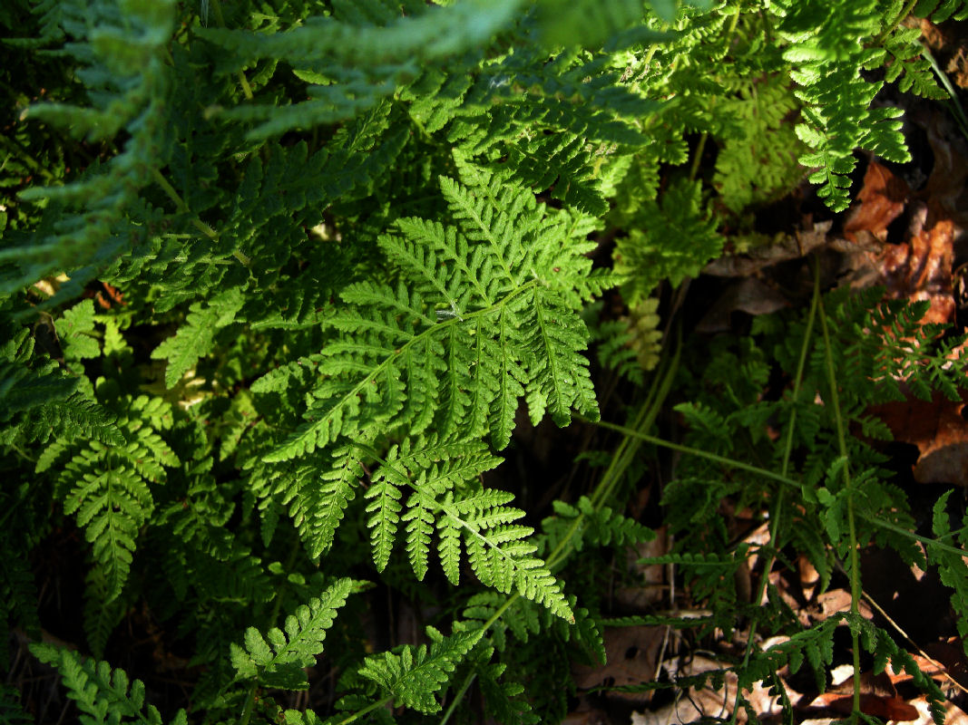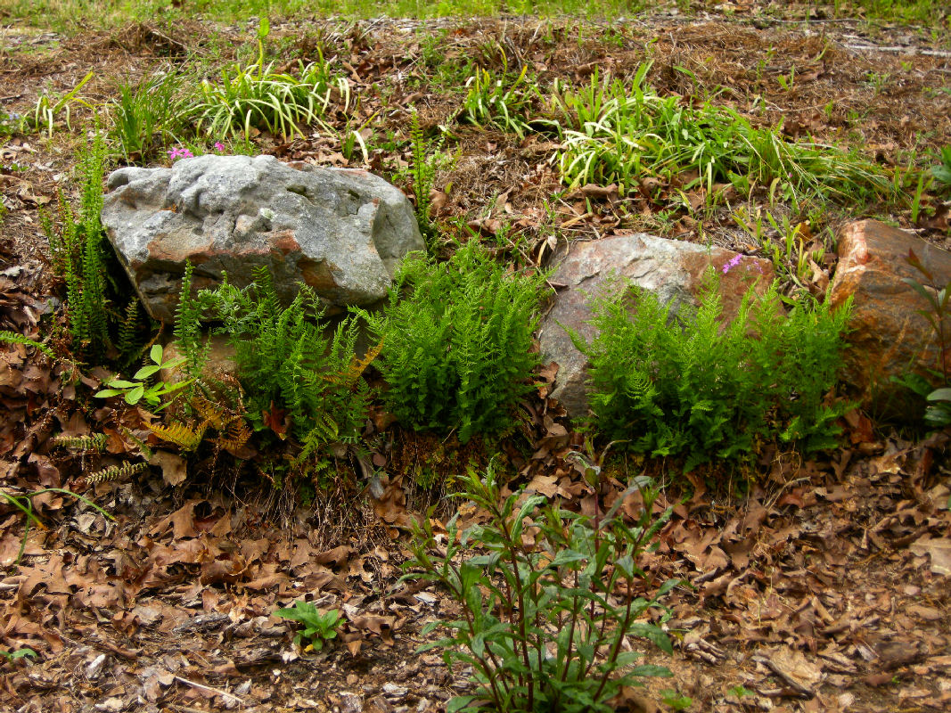 Several varieties of ferns have sprung up on their own in our yard, and the nice thing is that unlike most other accidental plants, we never have to move them to a more appropriate spot -- they pop up in the best places on their own.