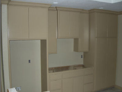 While on the subject -- if you look at my drawing, above, you can see that I did not plan for an enclosure around the refrigerator. This was Buss' idea, and it looks much better than having the refrigerator exposed.