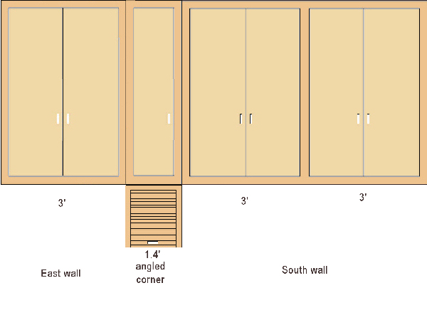 In drawing the cabinets along the other two walls, I first had one drawing with the upper cabinets