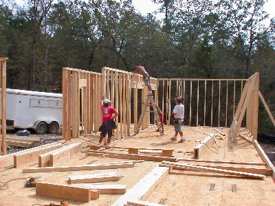 The last pictures taken were of the subflooring and floor joists not being completed on the first, so when we arrived only two days later to find the walls almost completely framed, we were the ones floored.