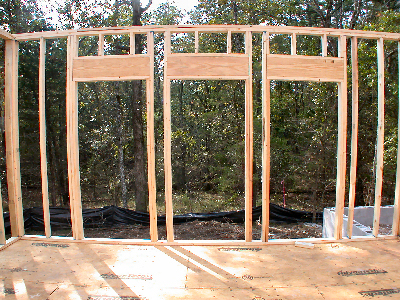 The opening looks like a double door, but it is the framing for a pocket door, so the actual opening to the bedroom will be a standard door width. To the right is the master closet and bath.