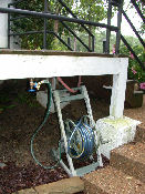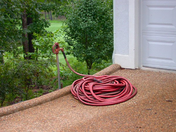 We first assumed that Judy's house would be on pier and beam foundation, but it appeared to both me and her builder that her lot was flat enough for a slab, so she could save money by having a stamped, dyed concrete patio in the back instead of a wooden deck. In addition, she will never have the expense of maintaining a wooden deck, as we have at our house (where we recently paid $1000+ to get our deck resealed).