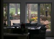 After having our house built, I found out that Frank Lloyd Wright's Fallingwater house, which has been called the best known private residence in the world by one of the greatest architects who ever lived, has the dining room tucked into a dark space away from all the windows, and the reason given is that you would normally be entertaining at night when it is dark anyway. With all modesty -- that was my thinking exactly.