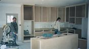Breshears has a large shop where he makes the cabinets, then he brings them out and installs them. |