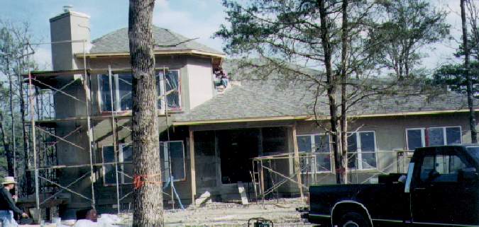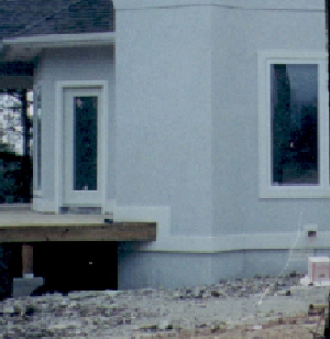 We were still concerned about the potential problems, but Craft (our builder) uses a different system of synthetic stucco called DuRock. In this system, concrete board is used as a base instead of styrofoam. The advantage is that concrete board will not retain water, so no rot occurs.