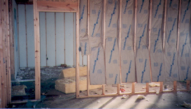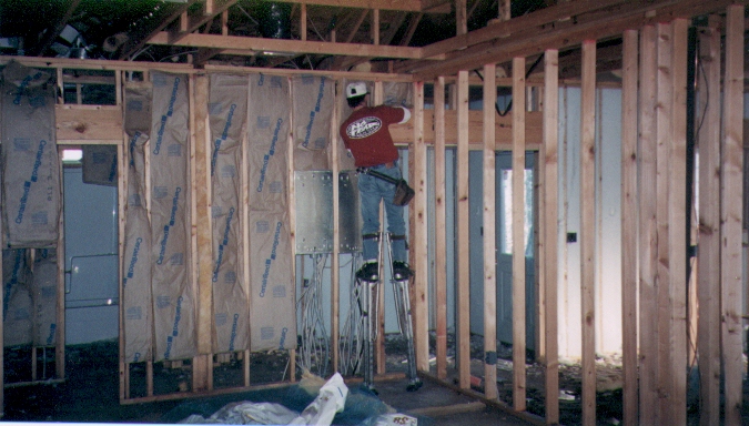 Insulation was also used between the master bedroom and the living room. This will help let us sleep even when someone is still watching TV in the living room or playing music in the den. |