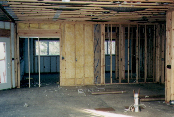 Here, insulation goes between the kitchen and the study/bedroom. |